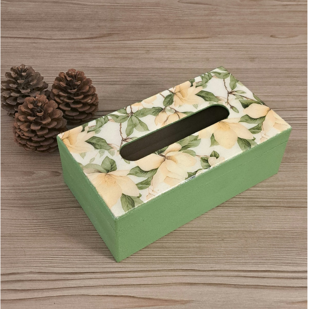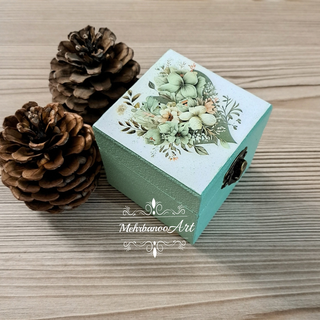 جعبه چوبی طرح گل سبز پاستیلی با کاور رزینی
