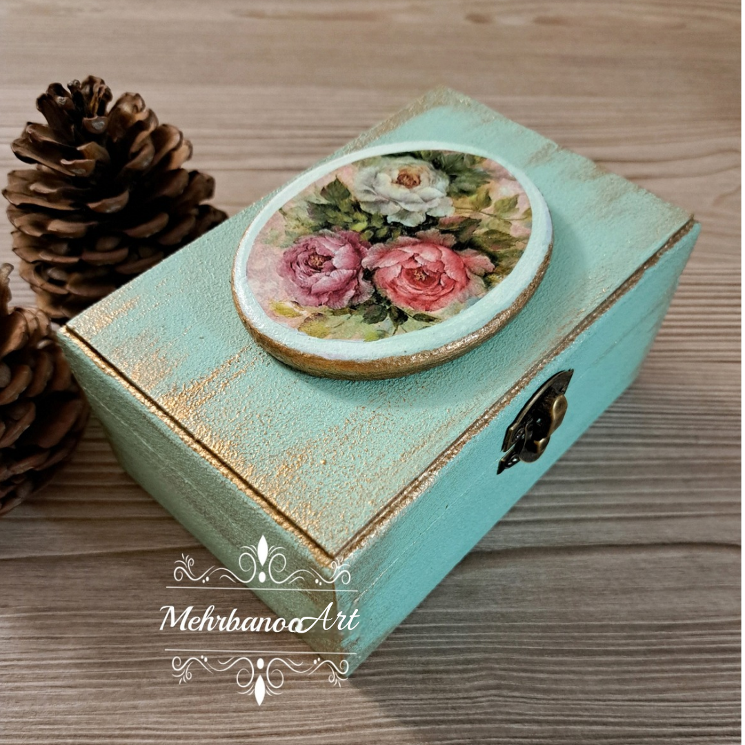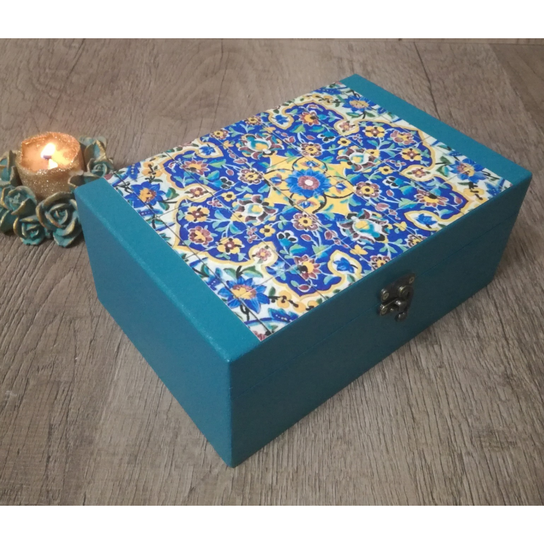جعبه چوبی طرح سنتی آبی با کاور رزینی