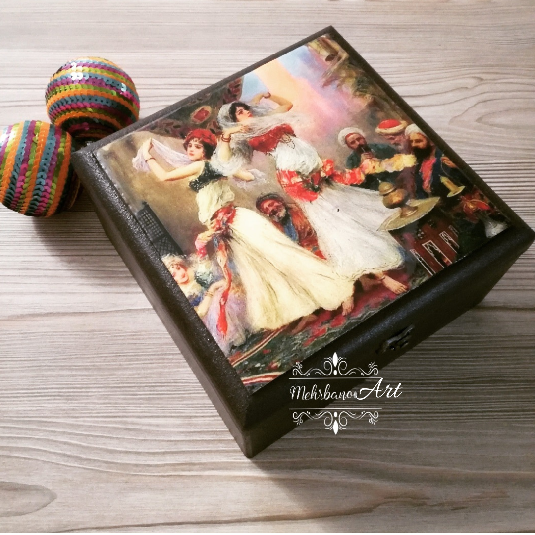 جعبه چوبی طرح جشن سنتی با کاور رزینی