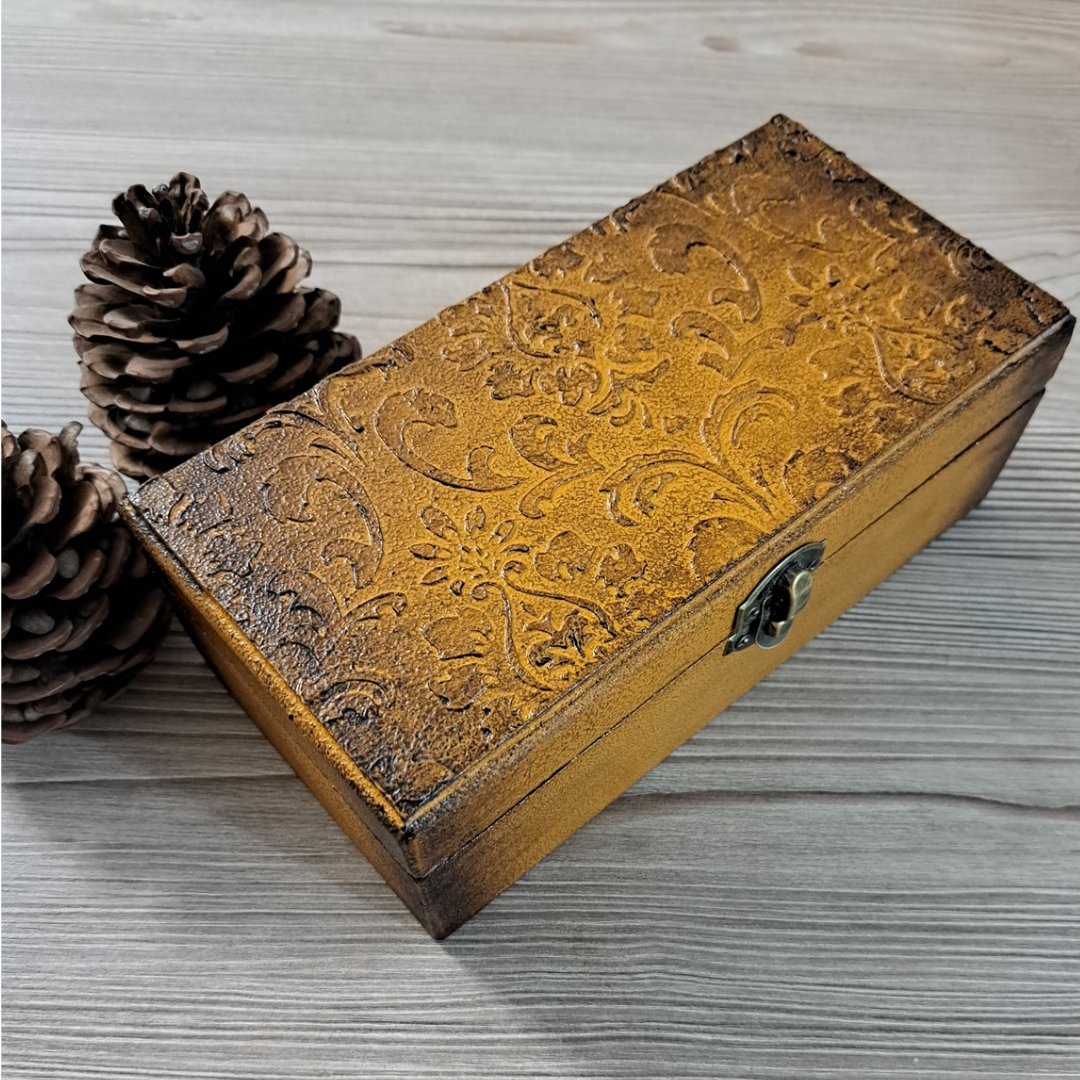 جعبه چوبی زرد طرح سنتی با کاور رزینی