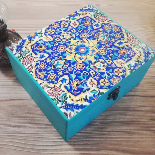 جعبه چوبی طرح جشن سنتی با کاور رزینی