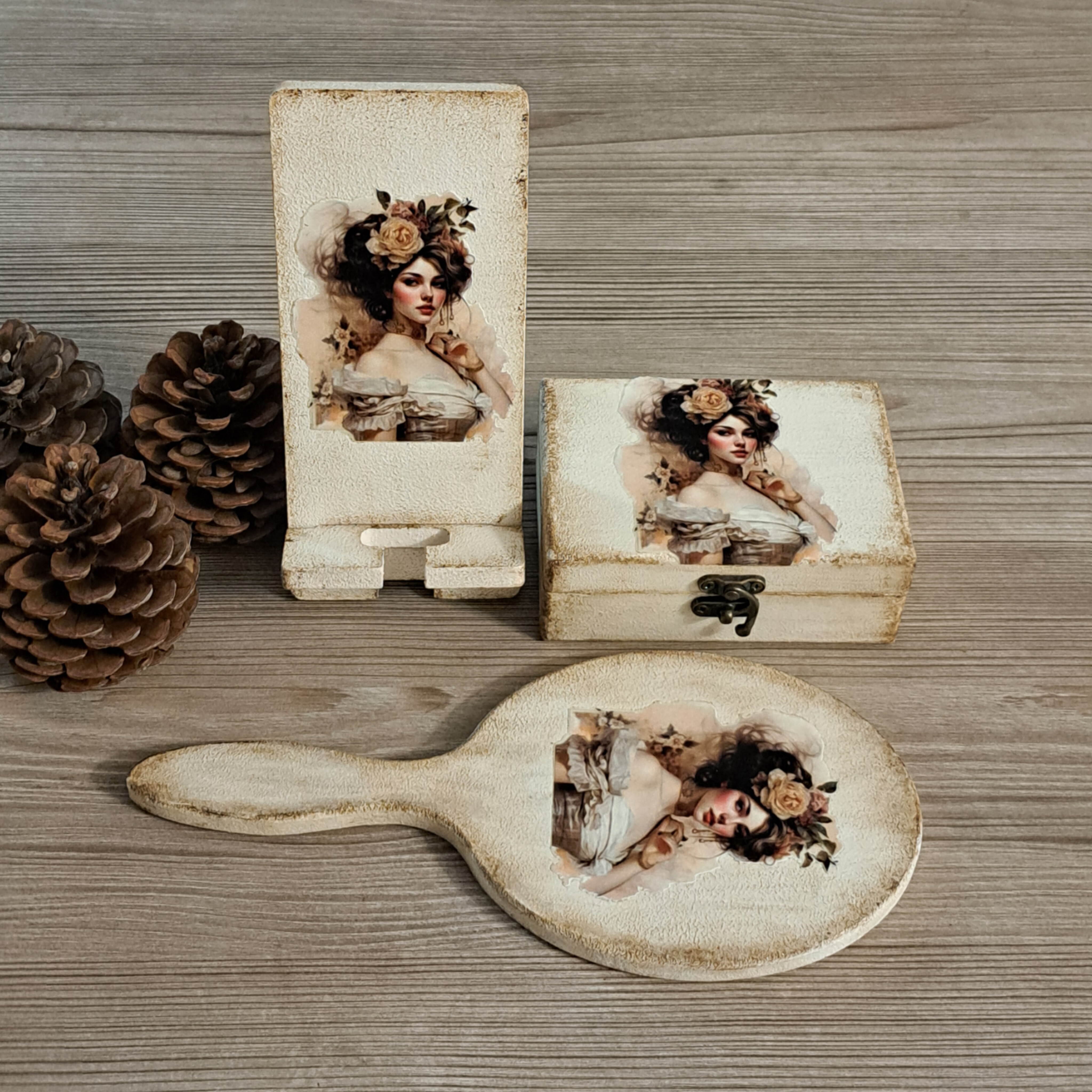 ست جعبه و آیینه چوبی طرح پری دریایی
